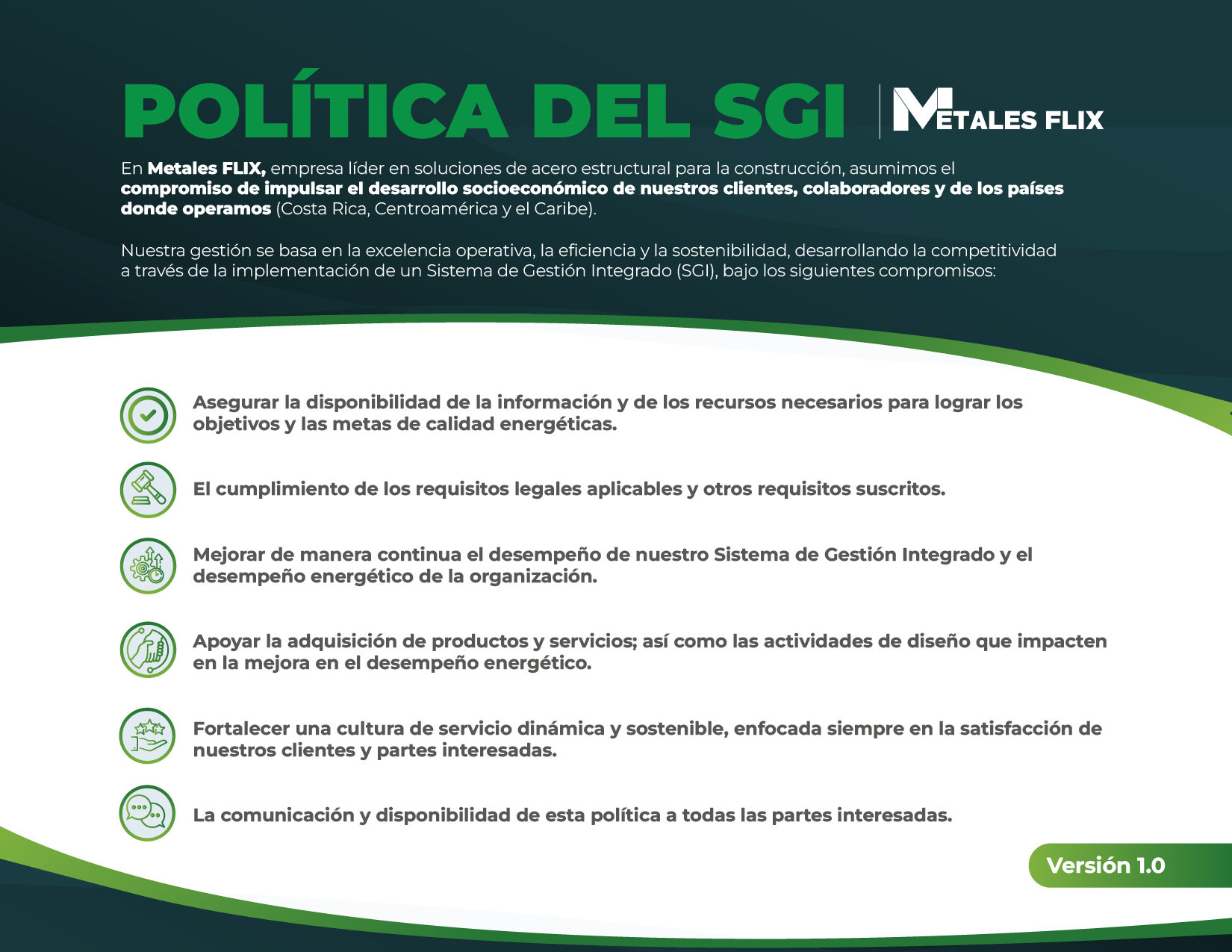 En Metales Flix fabricamos productos de acero largo para la construcción. Nos comprometemos con la mejora continua de nuestro desempeño energético, desarrollando la competitividad a través de la implementación de sistemas de gestión de la energía considerando: